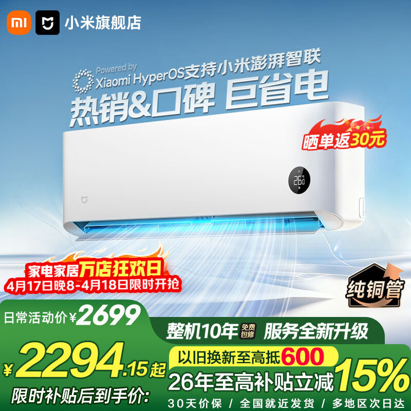 小米(MI)空调米家 1.5匹 巨省电 新一级能效 变频冷暖 家用卧室 壁挂式自清洁舒适空调挂机 2匹 新一级能效【巨省电】50GW/N2A1