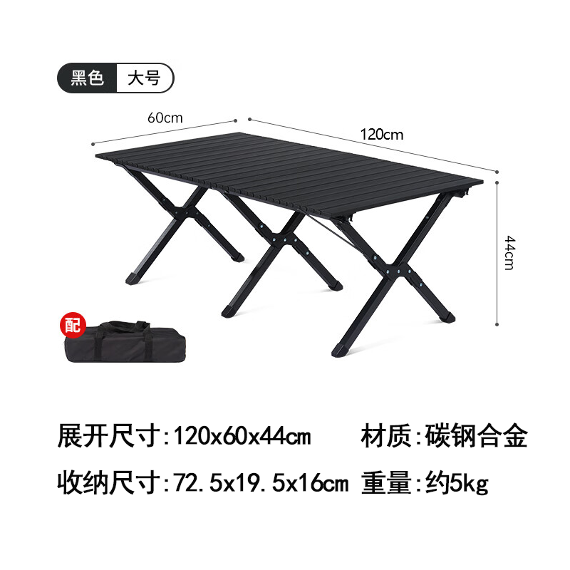 野徒者户外折叠椅露营椅子躺椅便携折叠月亮椅小凳子折叠凳钓鱼凳 曜石黑【120*60蛋卷桌】 出口质量加粗