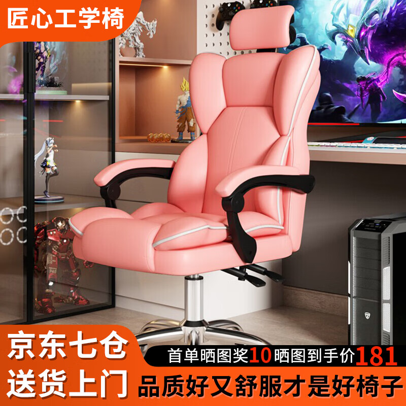 奥伦福特 电脑椅办公椅子电竞椅家用人体工学椅老板椅主播靠背椅皮革转椅 创意工学椅-樱花粉