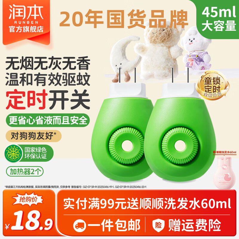 润本电热蚊香液无香定时蚊香器电蚊香补充液防蚊水家用驱蚊液蚊怕水 【3档定时自动循环】加热器2个