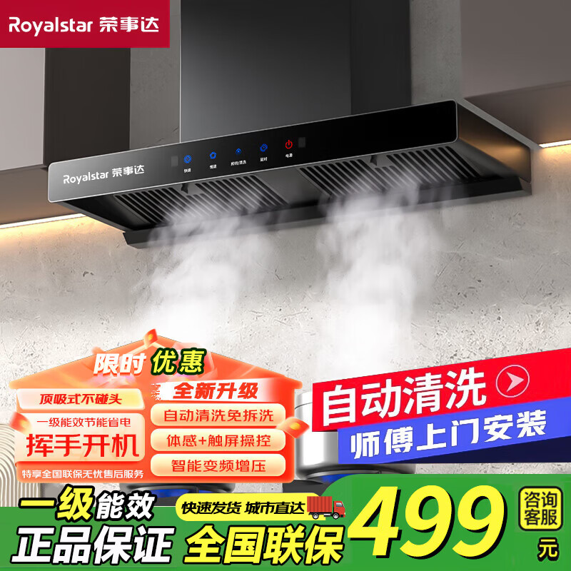 荣事达油烟机家用抽油烟机大吸力顶吸式吸油烟机一级能效欧式出租房烟机燃气灶套装品牌补贴以旧换新 900宽双腔五键+自动清洗+巡航增压包安装