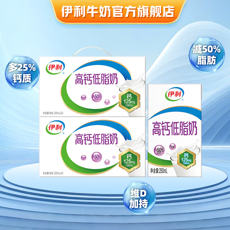 伊利牛奶系列 营养早餐搭配 优质乳蛋白 礼盒装 【送礼必备】高钙低脂250ml*24盒*2提 2-3月产