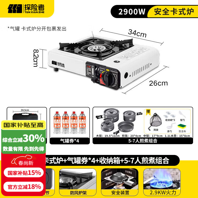 探险者(TAN XIAN ZHE)户外卡式炉露营炉具便携式野外煮火锅炉子卡磁炉全套带锅野餐套装 炉+箱+气券(赠品)*4+5-7人套装
