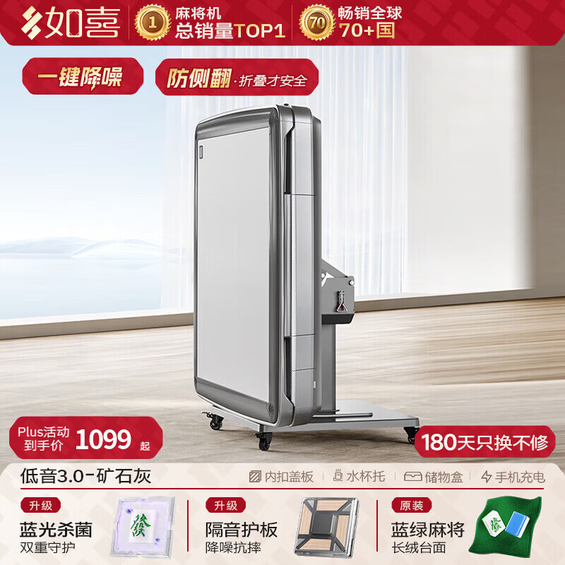 如喜【防侧翻20万次不卡牌】麻将机全自动餐桌低音家两用一体折叠电动 12【低音3.0一键降噪】防侧翻折叠-加厚台面-矿石灰 请联系客服选择麻将牌大小