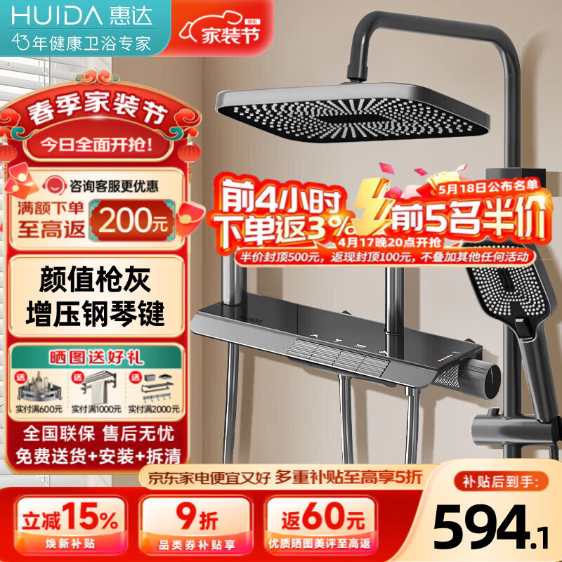 惠达卫浴淋浴花洒套装精铜主体增压花洒家用卫生间沐浴洗澡惠达花洒 DW70【新品】精铜增压+琴键置物