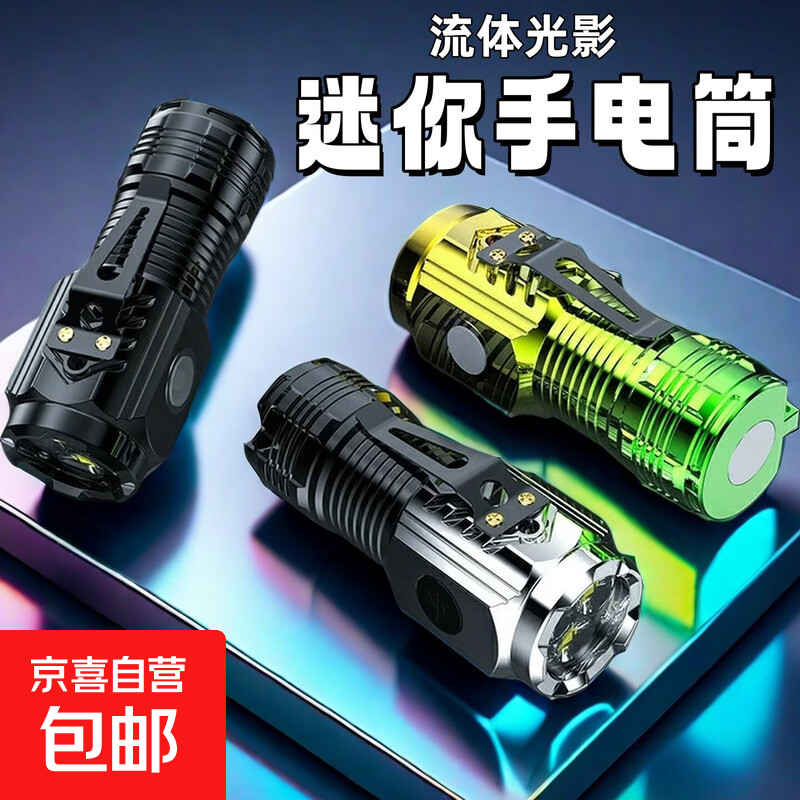 拍照配件超亮LED强光迷你手电筒户外便携长续航三眼小怪兽带吸铁石 黑色手电筒磁吸款