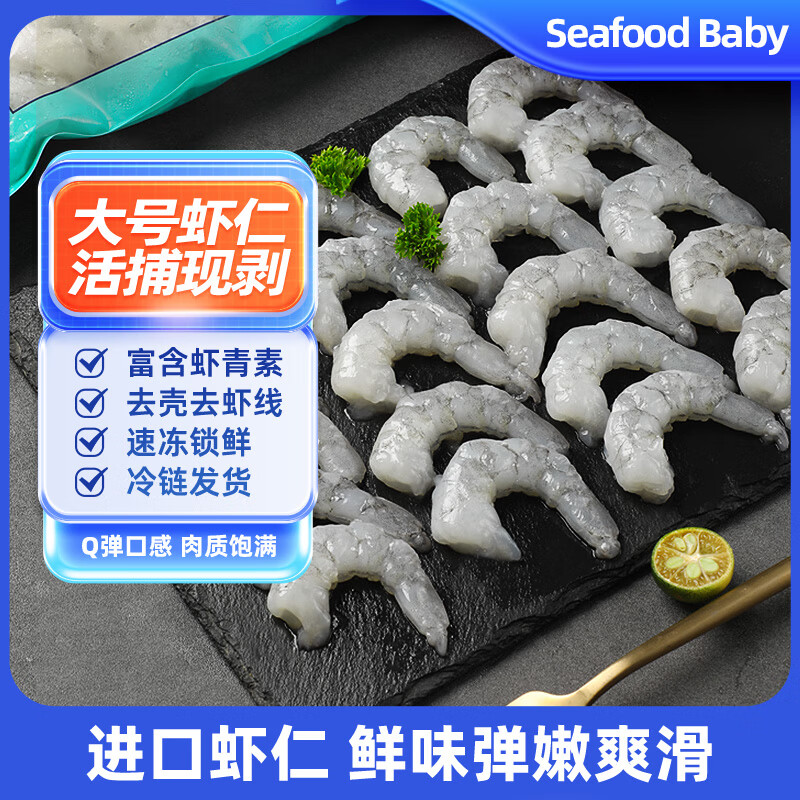 BOWO鲜冻南美白虾仁51-60只/磅(买1赠1)净重1.4斤(78-93只)自营进口