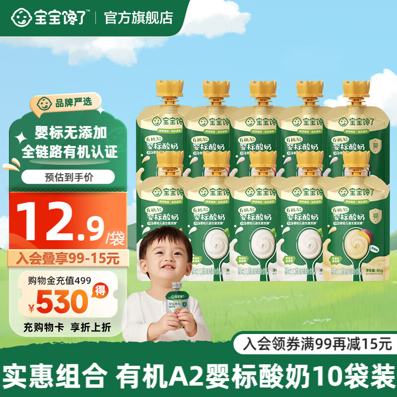 宝宝馋了婴幼儿酸奶6个月以上益生菌发酵宝宝零食儿童酸奶享宝宝辅食食谱 有机A2婴标酸奶组合85g*10袋【店长推荐】