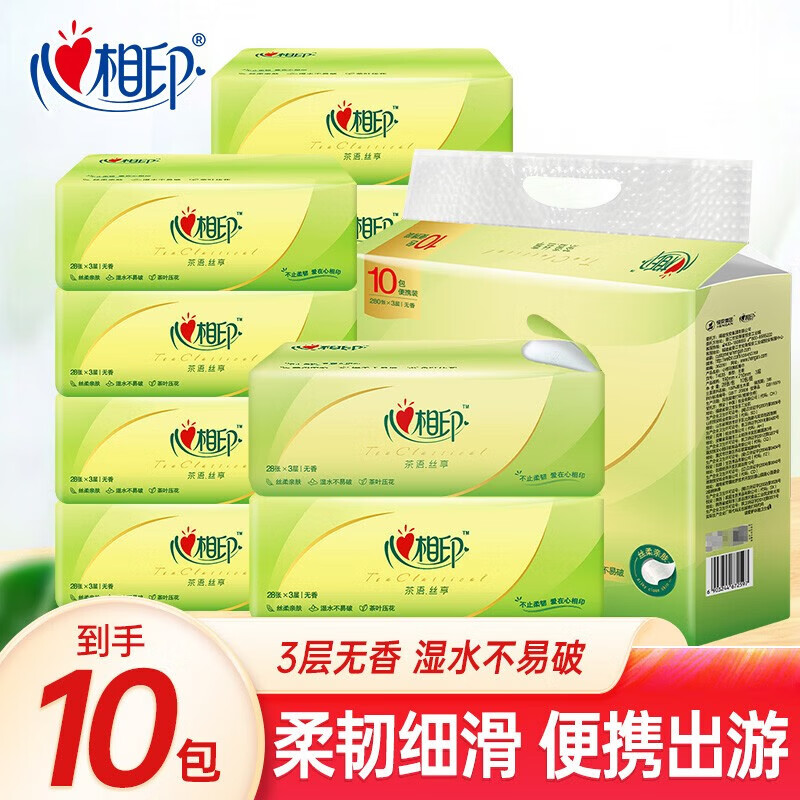 心相印茶语丝享提装 抽纸纸巾面巾纸卫生纸茶叶压花擦手巾餐巾纸 3层 280抽*1提 提装