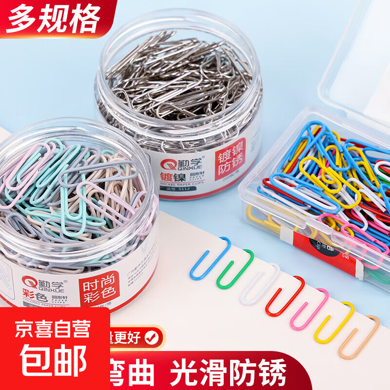 回形针办公用品曲别针固定文件回型针彩色纸张回行针书签回旋针收纳盒u型金属财务票据不锈钢镀镍 升级莫兰迪色【160枚/1桶装】