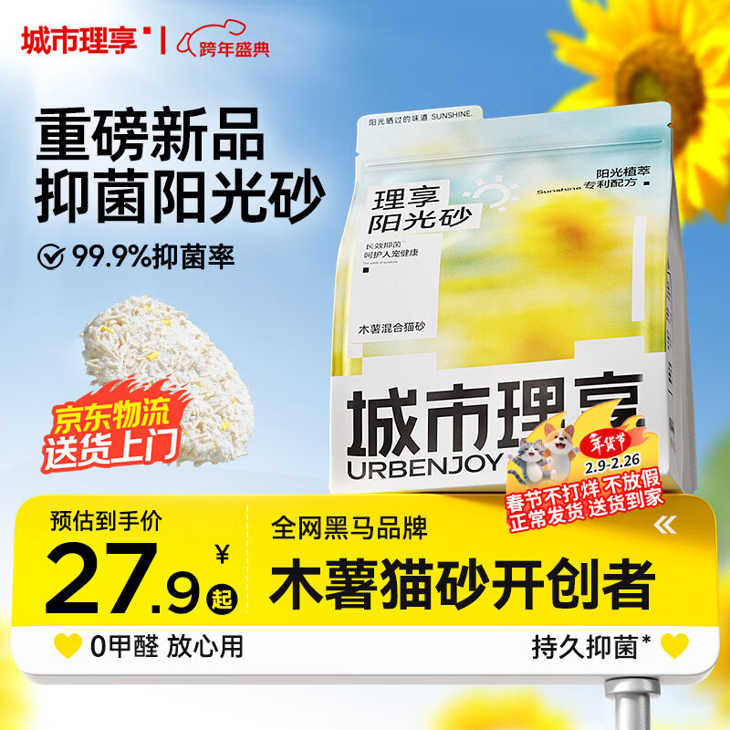 城市理享除臭几近无尘阳光砂抑菌除菌混合木薯猫砂2.5kg*1拒绝粘底散团
