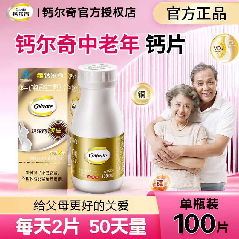 钙尔奇钙片中老年碳酸钙金钙尔奇维生素D3老人老年人男女士补钙镁锌铜片 【50天量】钙尔奇 100片*1瓶