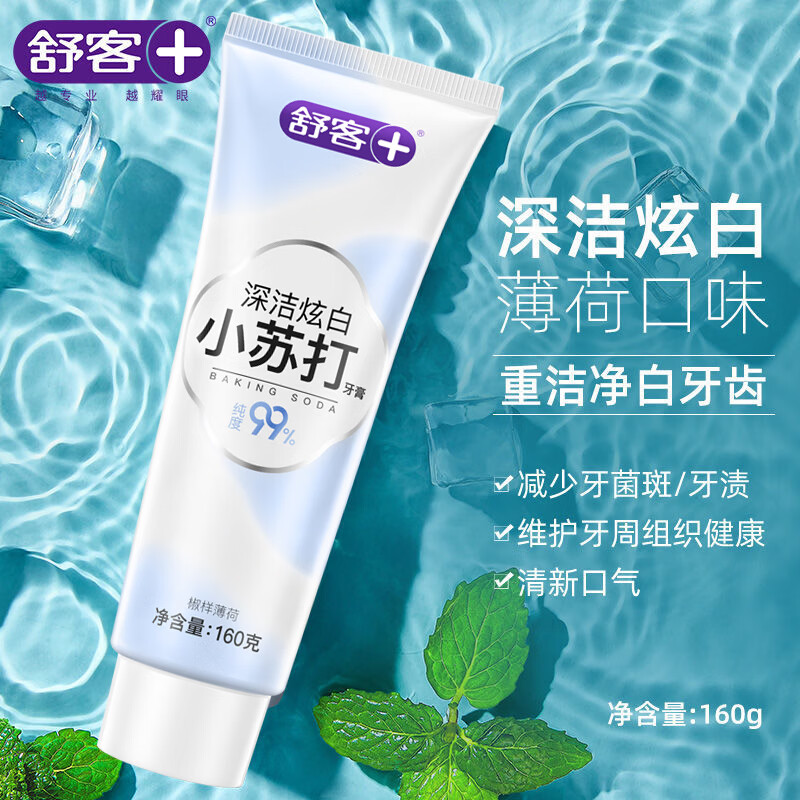 舒客小苏打牙膏美白清新口气臭牙齿炫白牙黄烟渍牙渍牙垢薄荷味 深洁炫白 160g*1支