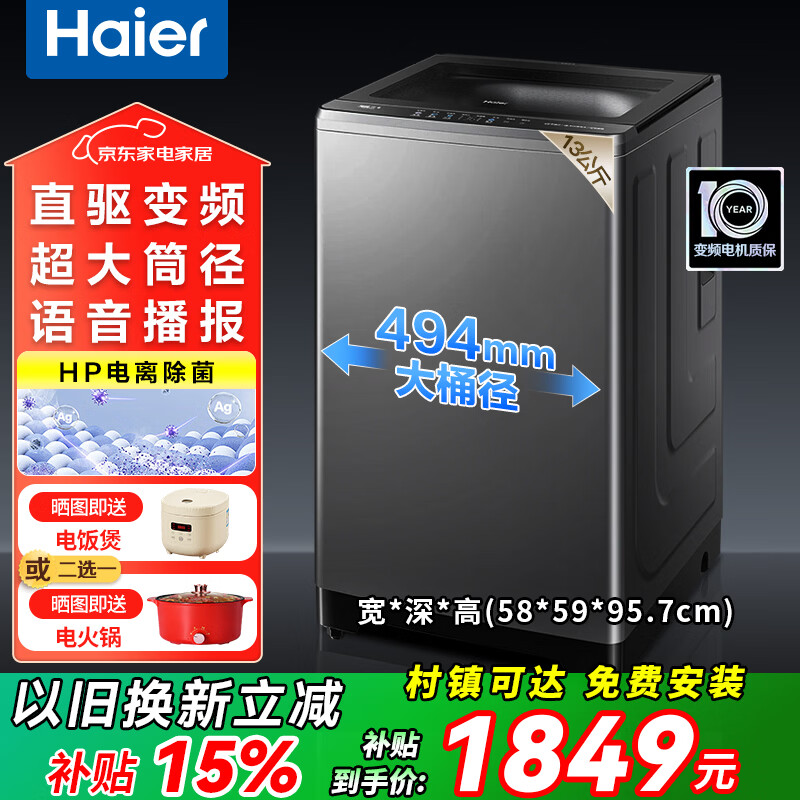 海尔(Haier)洗衣机全自动波轮12公斤直驱变频一级能效智能预约抗菌除螨大容量神童洗衣机防缠绕速洗 以旧换新 【海尔】13kg直驱变频+手搓防缠绕+语音播报 波轮