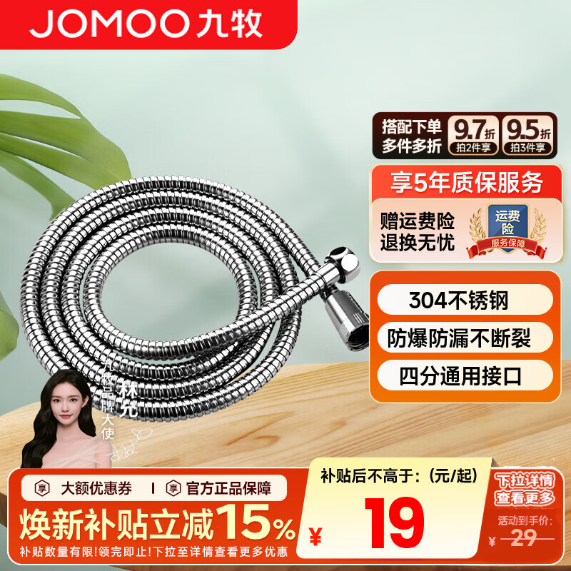 九牧(JOMOO)花洒喷头全套家用增压洗澡淋浴莲蓬头热水器手持淋雨花洒软管套装 不锈钢花洒软管H2BE2(1.5米)