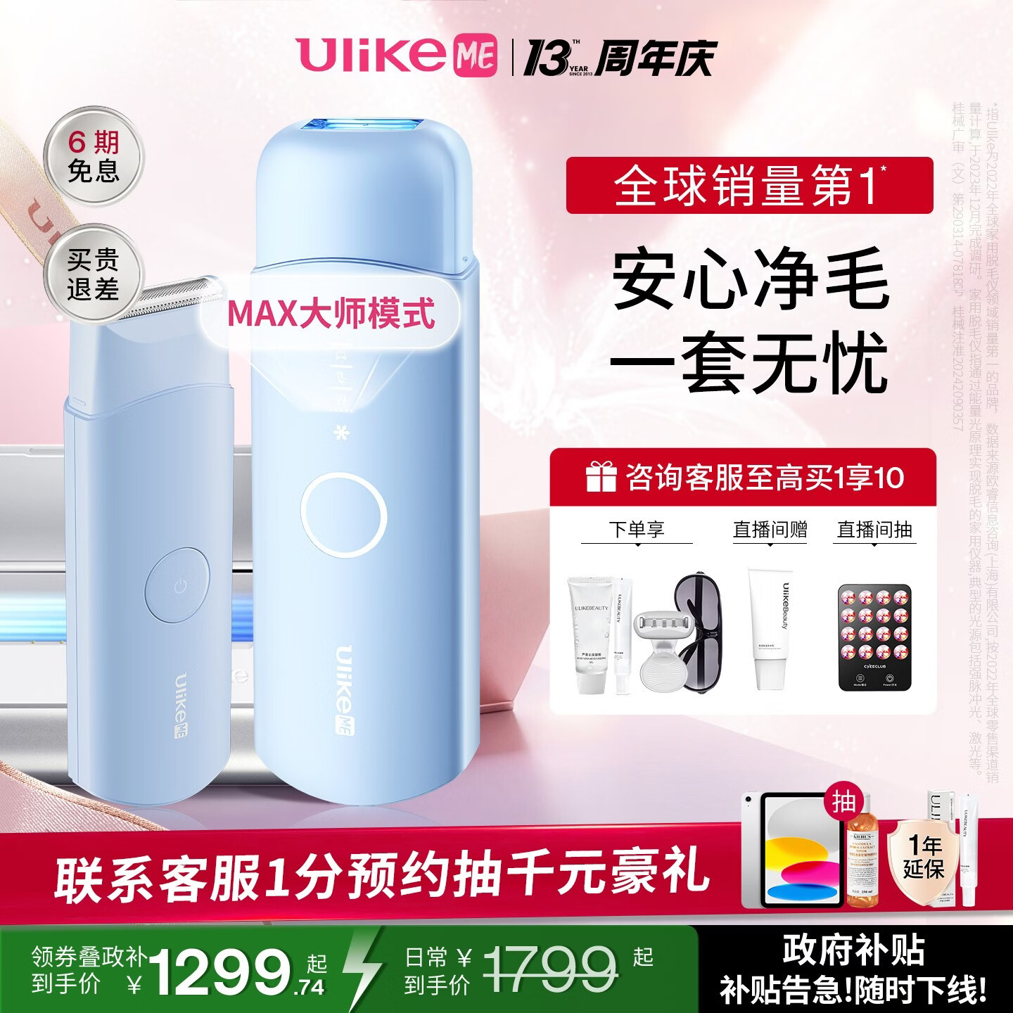 UlikeME【湿脱不加价】政府补贴蓝宝石冰点脱毛仪私处剃毛器女生大学生送男女友生日礼物美容仪 【超值套组】ME蓝+电刮刀+洁净舱京仓直发