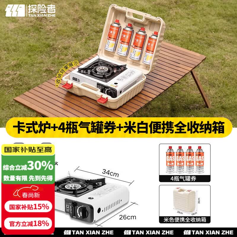探险者(TAN XIAN ZHE)卡式炉户外野外炉具炊具卡斯炉一体便携式卡磁煤气瓦斯露营燃气灶 卡式炉+一体收纳箱+4气券(赠品)