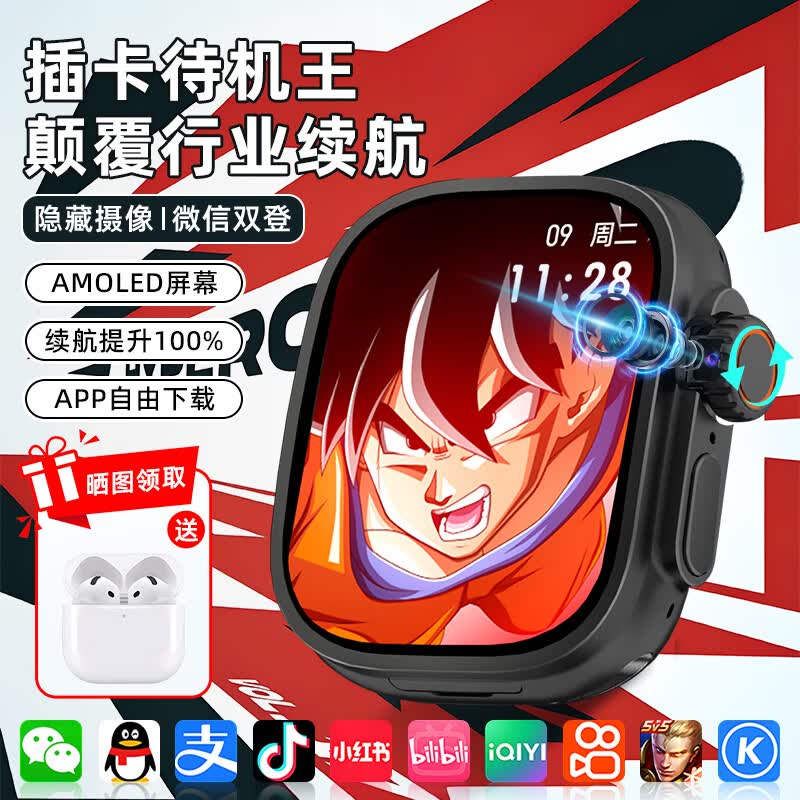 XAA华强北2026新款首发]WatchS10Ultri3华强北5G插卡智能电话手表GPS定位初中高学生成人苹果机和顺成 黑曲面 AMLED屏-畅玩大型游戏-大内存-NFC 表盘自定义+微信全功能+久玩不发烫