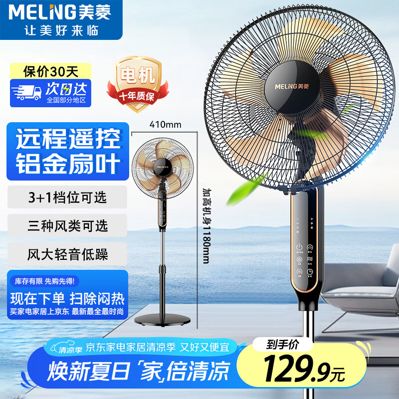 美菱(MeiLing)电风扇落地扇大风量办公室家用可拆洗电扇摇头轻音立式交流定频风扇落地 【升级铝叶】16英寸4档遥控款