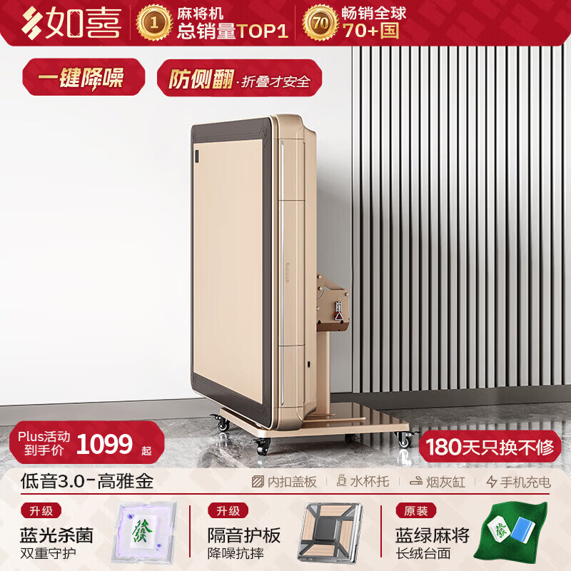如喜【防侧翻20万次不卡牌】麻将机全自动餐桌低音家两用一体折叠电动 11【低音3.0一键降噪】防侧翻折叠-加厚台面-高雅金 请联系客服选择麻将牌大小