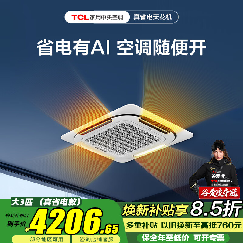 TCL吸顶空调 天花机 中央空调商用变频隐藏式吸顶式 天井机5匹嵌入式商铺办公室厂房立式柜式空调柜机 大3匹 冷暖-变频新一级【薄嵌真省电款-新品】
