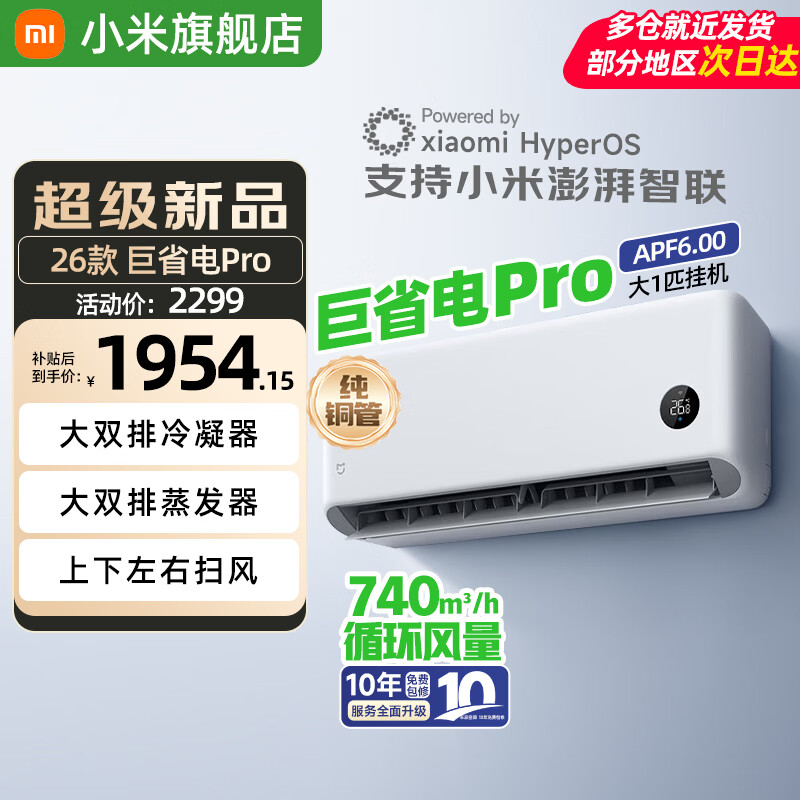 小米(MI)米家空调 1.5匹 巨省电 新一级能效 节能省电 变频冷暖家用卧室壁挂式自清洁舒适空调挂机 大1匹 一级能效 巨省电Pro【26款新品】
