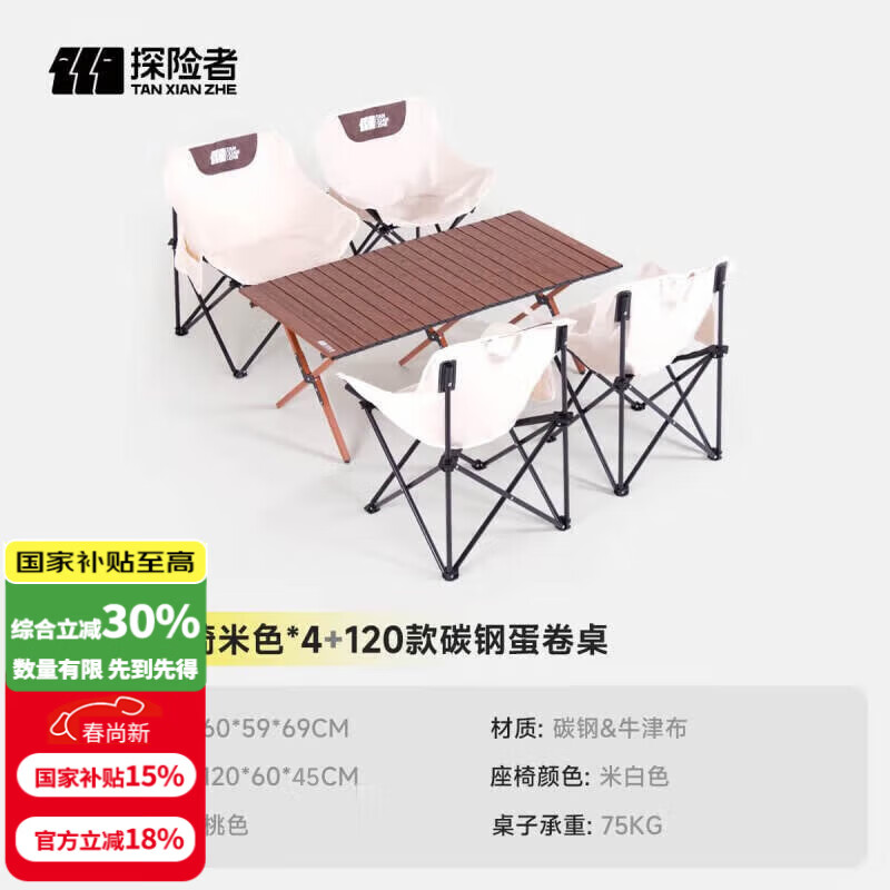 探险者(TAN XIAN ZHE)户外折叠椅露营椅子月亮椅便携折叠桌椅高靠背躺椅小凳子钓鱼椅 热销限量【一桌四椅组合】