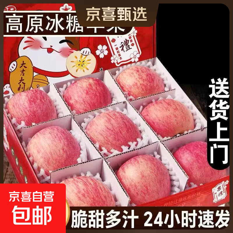 正宗山东烟台红富士苹果脆甜多汁新鲜上市箱装 带箱9-10斤净重8.5斤75mm