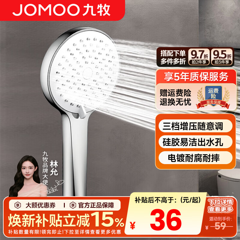 九牧(JOMOO)花洒喷头全套家用增压洗澡淋浴莲蓬头热水器手持淋雨花洒软管套装 增压花洒头S182013【三档可调】