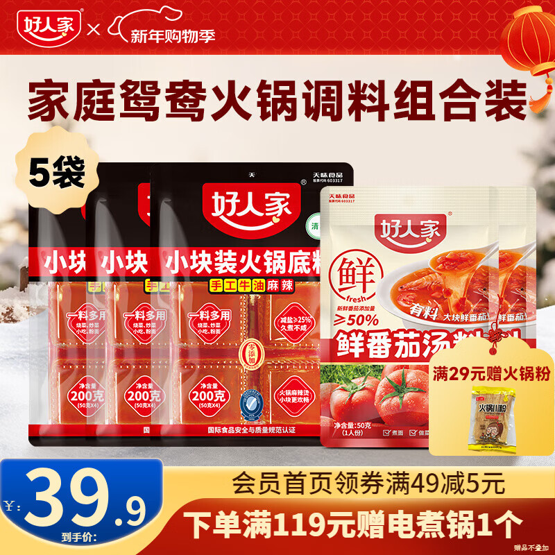 好人家手工牛油火锅底料四川麻辣风味一料多用调味料 手工火锅200g*3袋【赠鲜番茄50g*2】