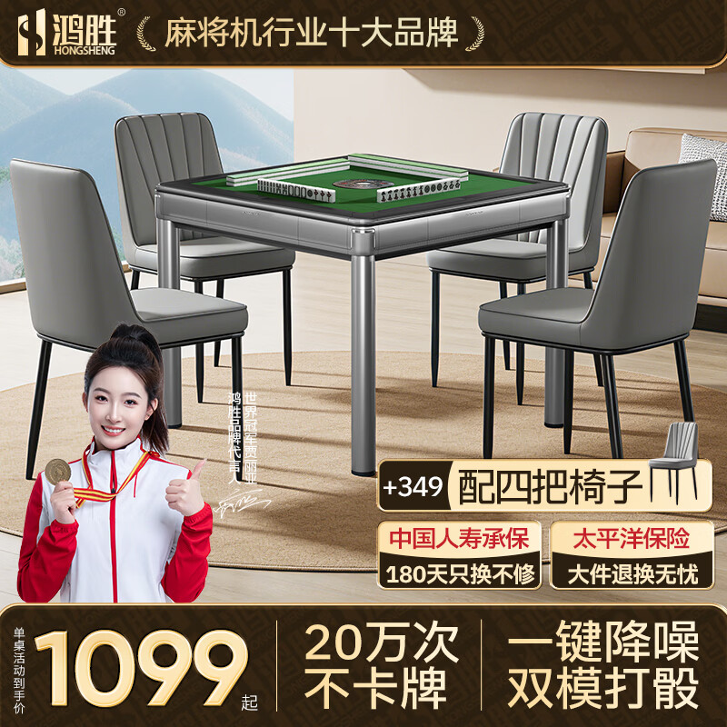 鸿胜麻将机全自动餐桌两用一体家用电动过山车超薄静音新款棋牌麻将桌 01【JD物流】一键降噪+杀菌除湿(单桌)-星空灰