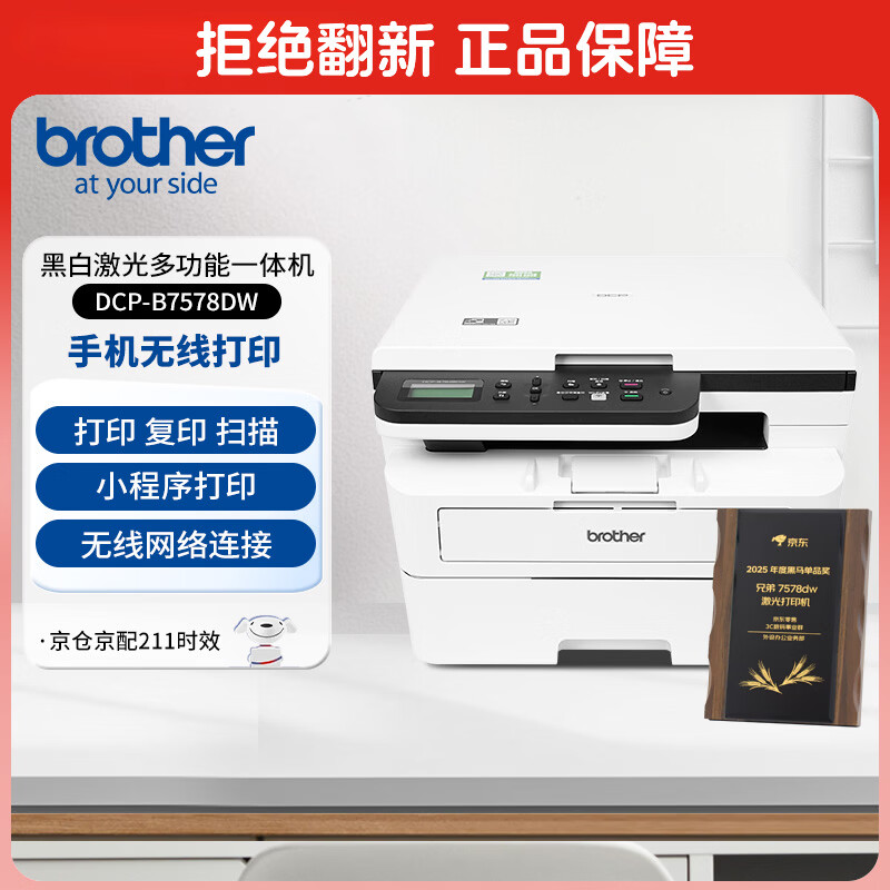 兄弟(brother)DCP-B7578DW 办公家用学习黑白激光打印机(2600页大印量 双面 高速 打印 复印 扫描 远程打印 )