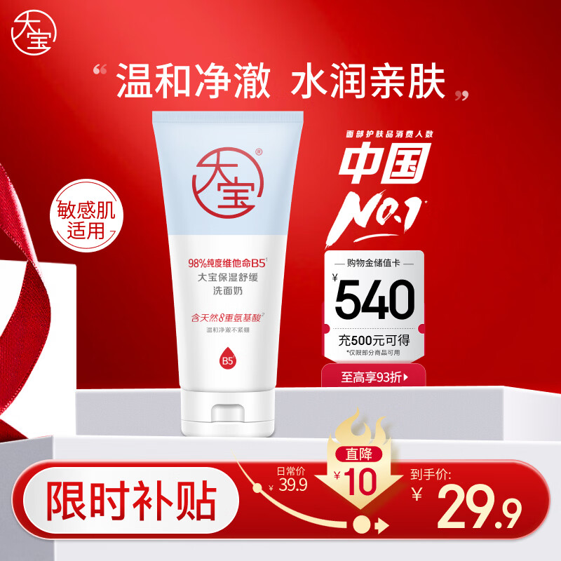 大宝保湿舒缓洗面奶140g氨基酸洁面男女士不紧绷面部护肤品