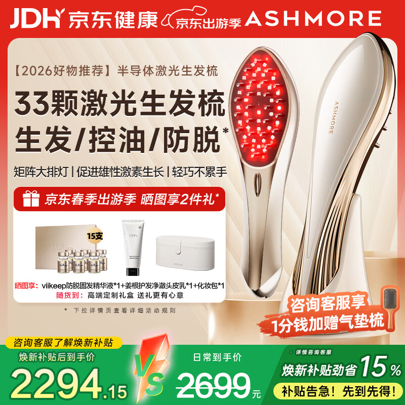 艾诗摩尔(ASHMORE)激光生发仪红光健生发梳红宝石电动按摩梳器头皮控油防脱 AS-SF03