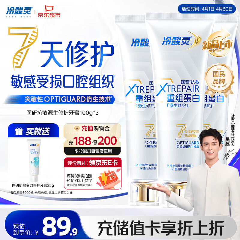 冷酸灵医研抗敏源生修护重组蛋白牙膏 7天修护受损口腔 3支装共300g