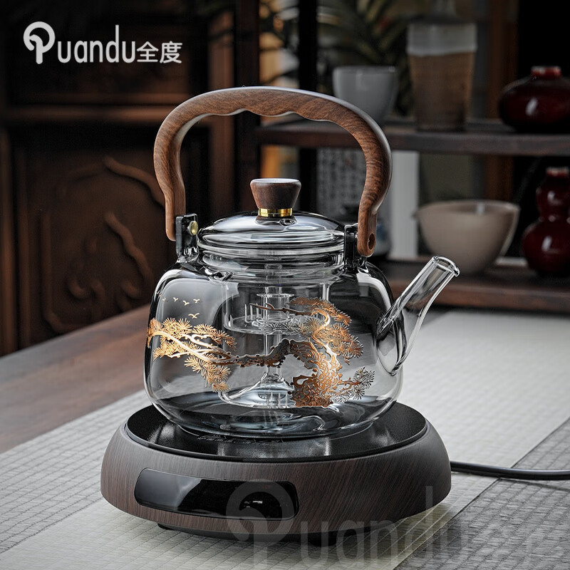 全度玻璃提梁壶家用小型电陶炉煮茶器烧水壶大容量保温玻璃茶壶 【升级超薄1500W木纹色】牡秋款