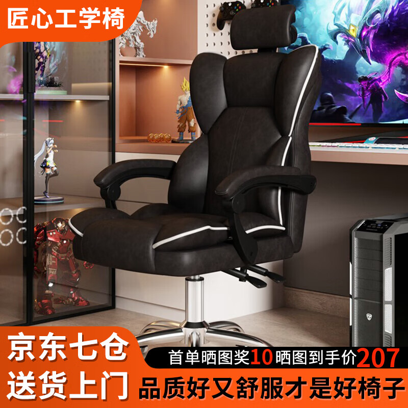 奥伦福特 电脑椅办公椅子电竞椅家用人体工学椅老板椅主播靠背椅皮革转椅 创意工学椅-黑纹【升级科技布】