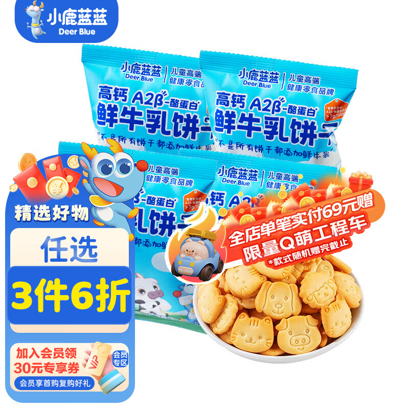小鹿蓝蓝鲜牛乳饼干儿童零食牛奶饼干宝宝辅食小饼干营养早餐休闲食品 鲜牛乳饼干【尝鲜装】4袋