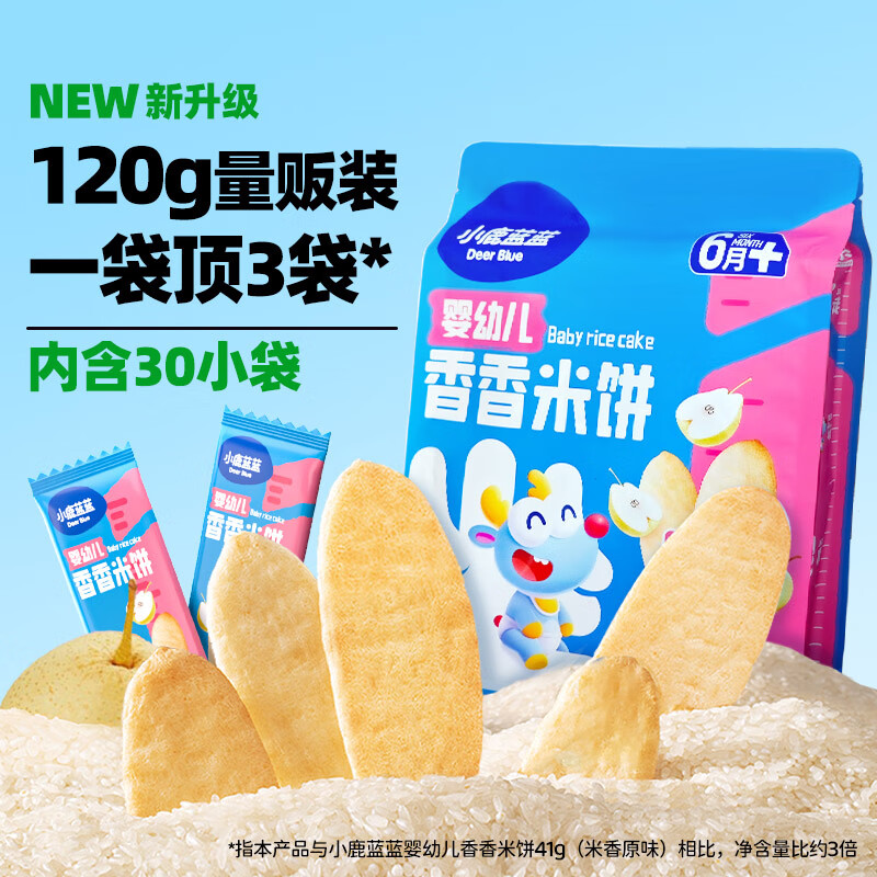 小鹿蓝蓝婴幼儿香香米饼 宝宝零食营养辅食温和磨牙米饼 入口易溶儿童零食 【囤货1袋装】原味60片120g