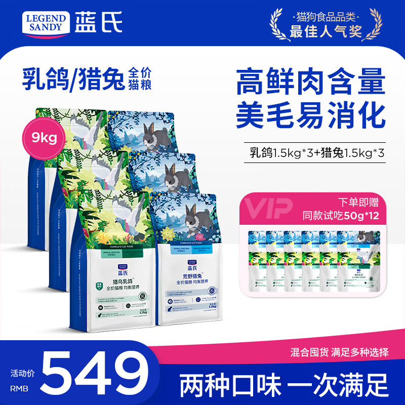 LEGENDSANDY蓝氏猫粮生鲜猎鸟鲜乳鸽生骨肉冻干高蛋白全价成猫粮幼猫通用型 【囤货装】丨猎鸟乳鸽4.5kg+荒野猎兔4.5kg
