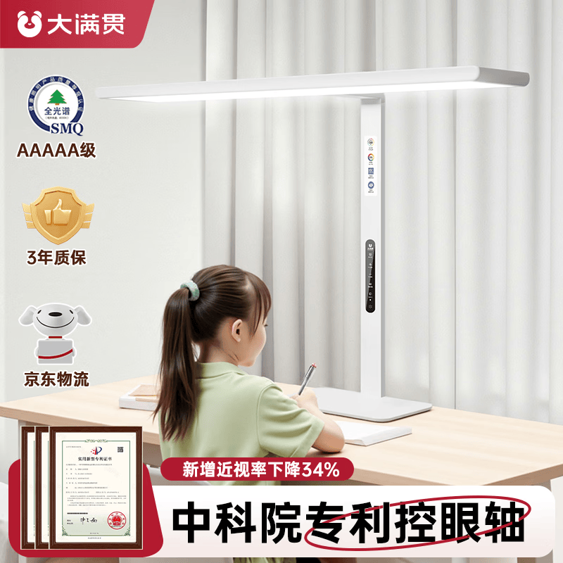 大满贯控轴卫士全光谱护眼桌面灯学生台灯护眼学习专用儿童防近视护眼灯 控轴卫士T1桌面大路灯