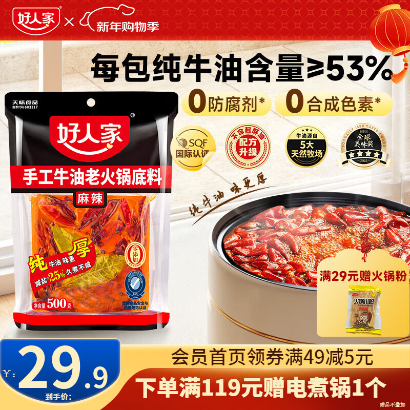 好人家手工牛油火锅底料四川麻辣风味一料多用调味料 手工牛油火锅底料500g【麻辣】