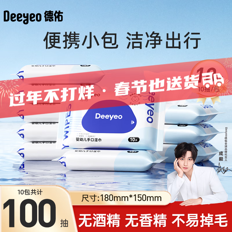 德佑湿巾婴儿湿巾手口湿纸巾生儿湿巾宝宝手口屁屁专用儿童湿巾 【50G布便携装】 10抽 10包
