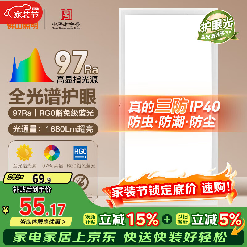 FSL佛山照明厨房灯扣板灯卫生间吸顶平板灯集成吊顶灯300*600沐光24W