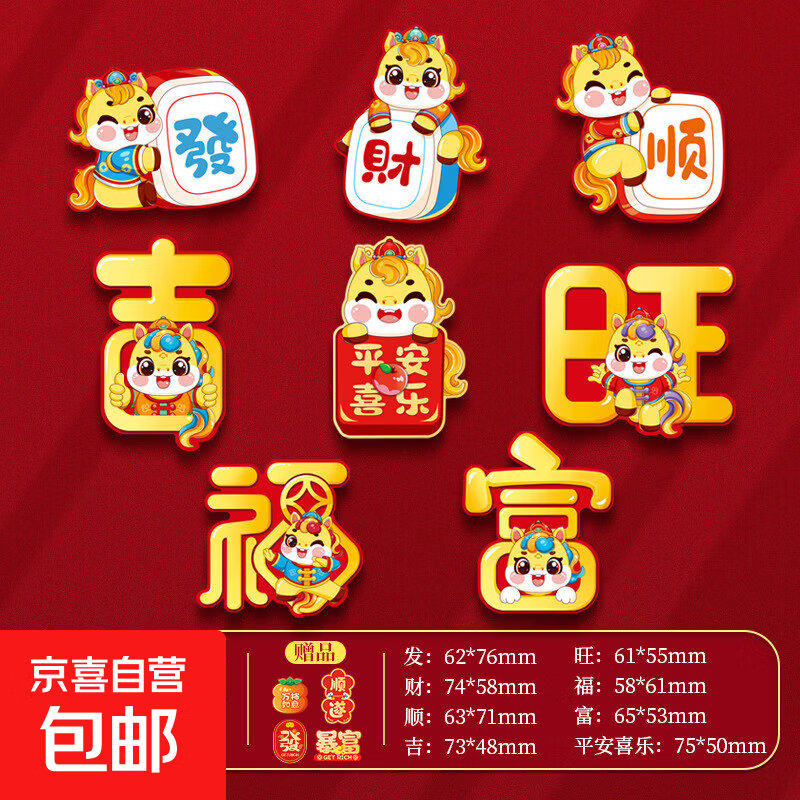 2026马年卡通创意磁吸冰箱贴春节过年新年福 贴新春装饰饰品配件 马年冰箱贴-平安喜乐-8拼-1包
