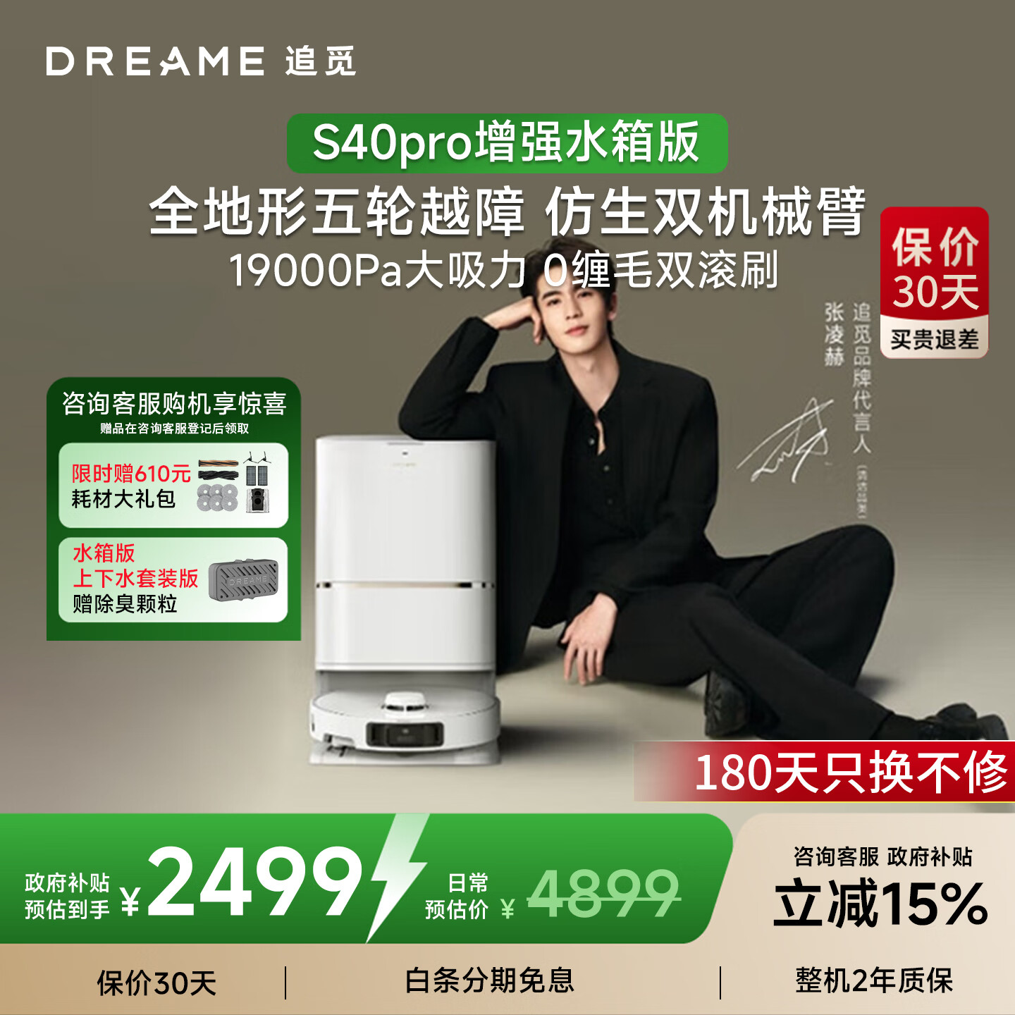 追觅S40增强【春晚同款】 扫地机器人扫拖洗烘一体全自动清洗基站仿生双机械臂越障拖地机 【咨询享升级】S40pro增强-水箱版