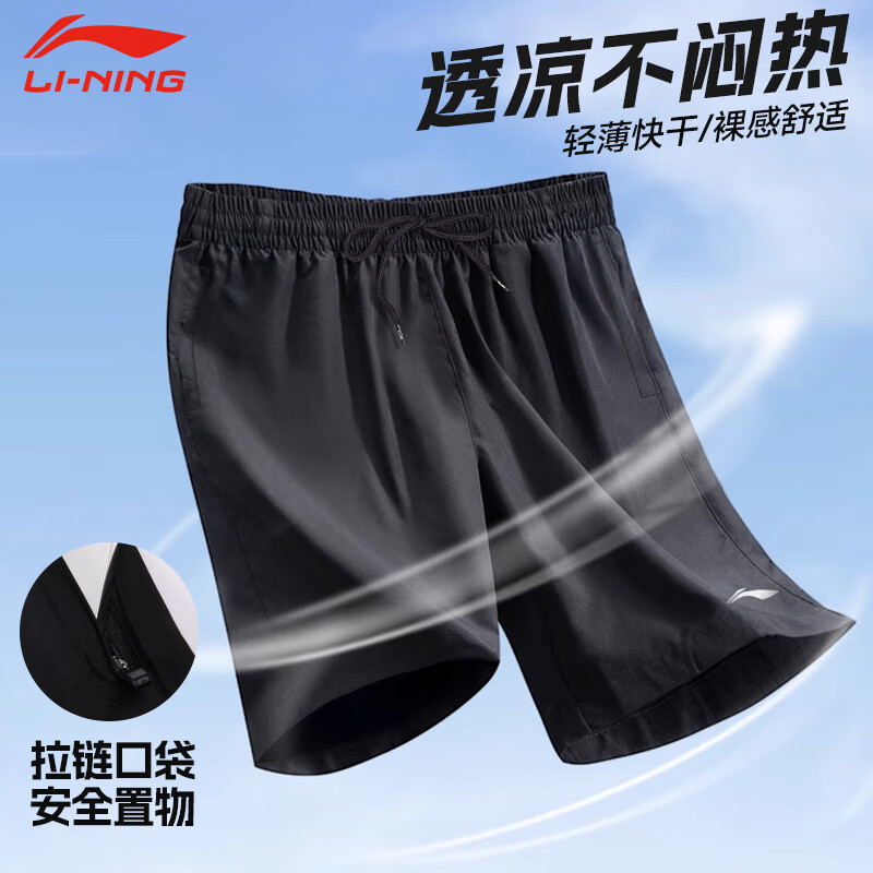 李宁(LI-NING)运动短裤男夏速干冰丝跑步休闲马拉松健身训练带内衬假两件裤子 经典黑-凉感速干·拉链口袋 4XL