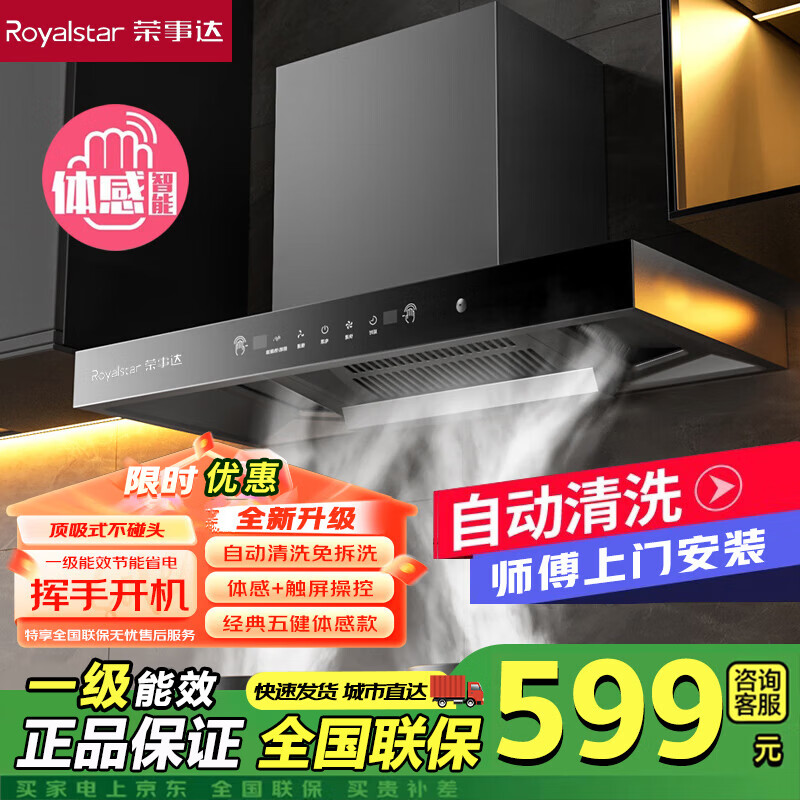 荣事达油烟机家用抽油烟机大吸力顶吸式吸油烟机一级能效欧式出租房烟机燃气灶套装品牌补贴以旧换新 900宽三腔触屏体感+自动清洁+巡航增压+上门安装