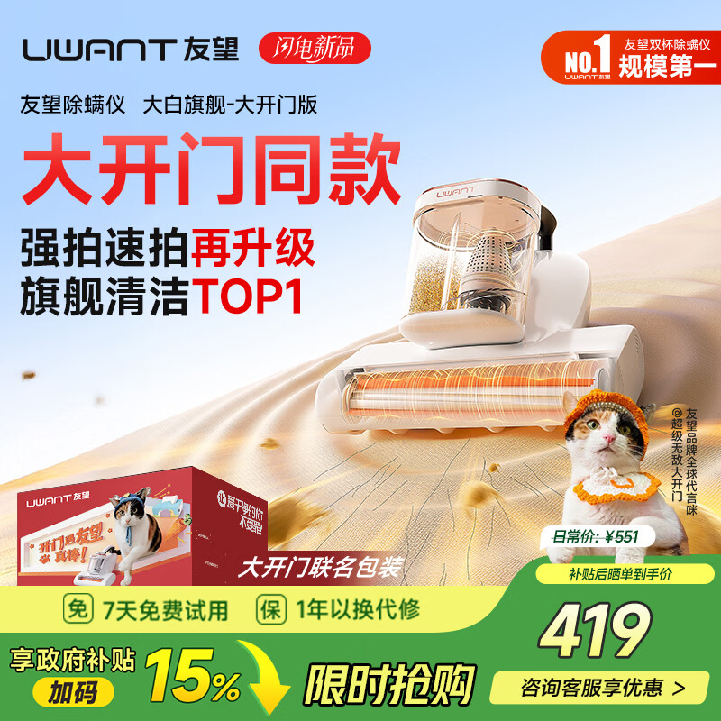 UWANTTim同款【除螨又除毛】友望除螨仪大白系列宠物家用大吸力超声波除螨虫吸尘床宝高温杀菌神器 大白旗舰【大开门联名款】