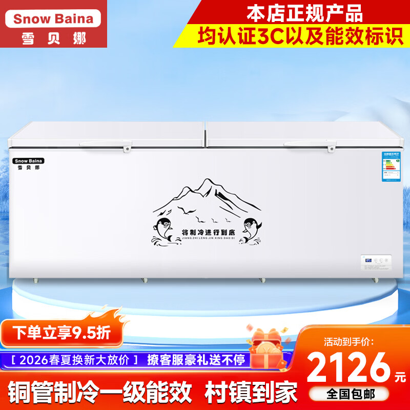 雪贝娜冰柜商用大容量全冷冻家用双温卧式冷柜展示柜 1388双机【铜管一级能效】长2.18米加宽